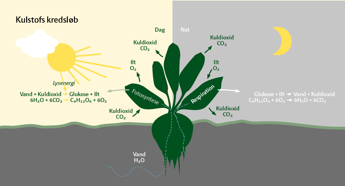 Planterne optager kulstof fra luften som kuldioxid CO2. Det sker ved fotosyntesen. Planter kan også afgive kulstof i form af CO2. Det sker ved respiration. Fotosyntese og respiration er to modsatrettede processer, der er altafgørende i landbruget, da de sikrer, at planter har den nødvendige mængde kulstof til rådighed til deres vækst.