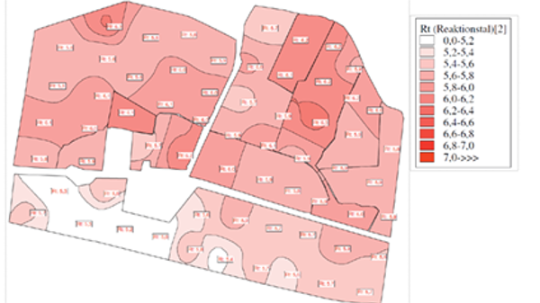 Man kan bruge et Rt-kort (Reaktionstalskort) til at graduere tildelingen af kalk i marken.