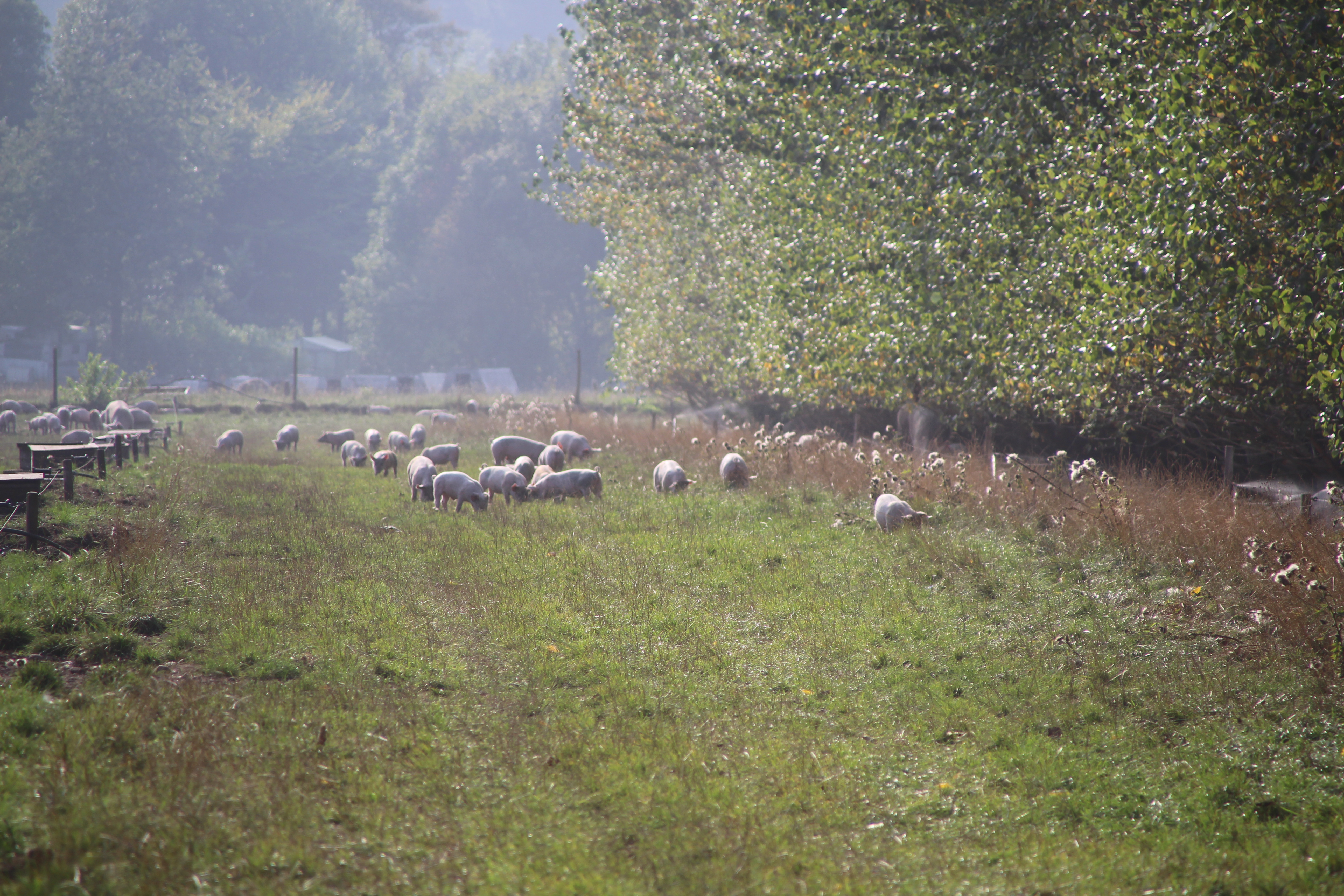 Grise nyder også godt af at have adgang til arealer med træer. Grise er oprindeligt et skovdyr. Mellem træer kan grisene finde skygge og samtidig rode i jorden efter orme, insekter og rødder.