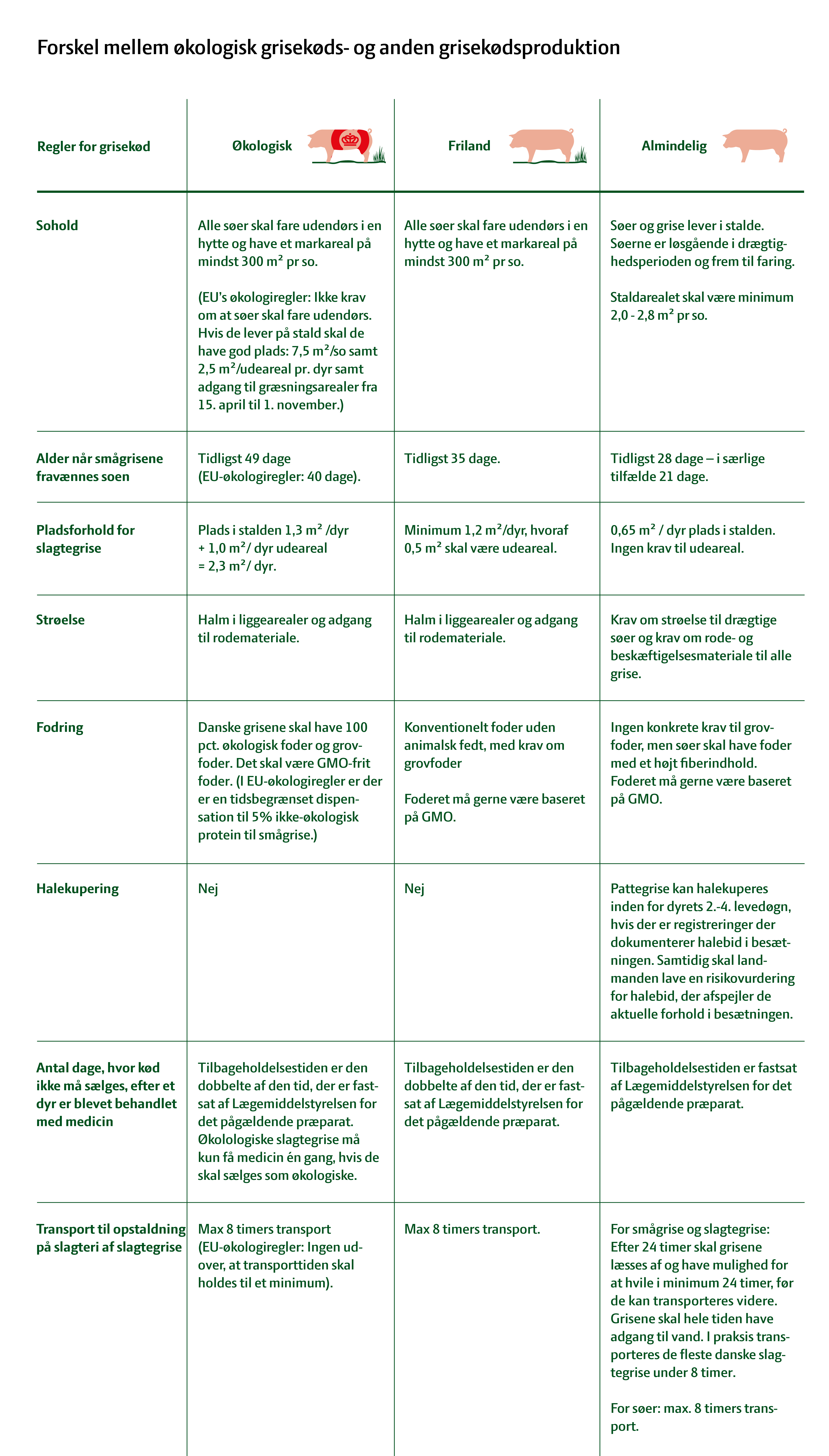 Her kan du se forskellen i reglerne mellem økologisk griseproduktion og anden griseproduktion.